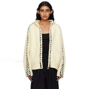 OPEN YY Beige Stitch Zip Up Knit Hoodie $186.00 $380.00